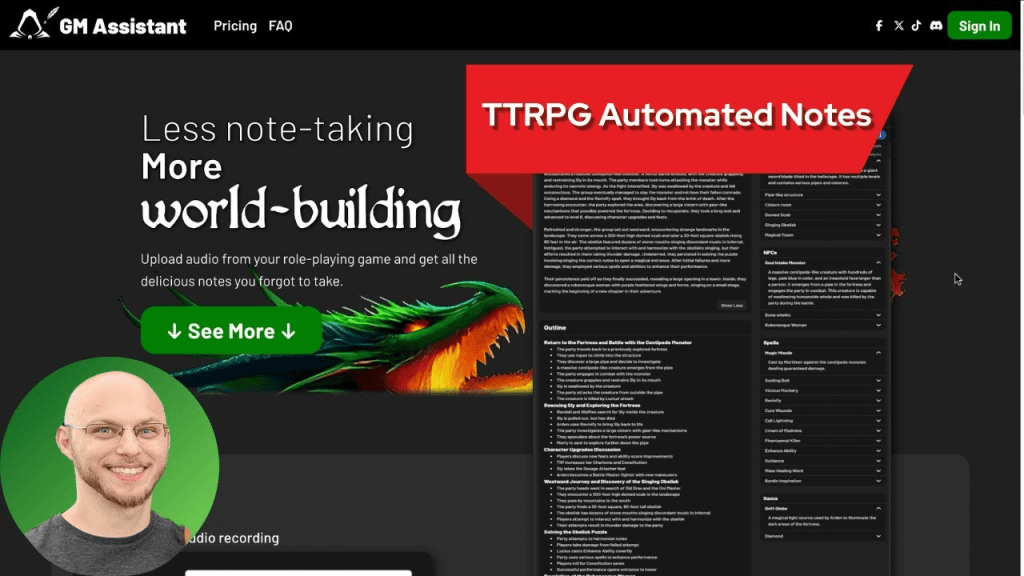 A: I’d encourage anyone interested in GM Assistant to join our Discord community at discord.gg/sRaryWKkFG. We’re building this tool with and for the TTRPG community, and we value user feedback and interaction. Whether you’re a seasoned GM struggling with note-taking or just looking to streamline your session prep, we’d love to hear from you and help make your GMing experience better.